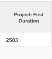 What does the number displayed for "Project First Duration" represent?