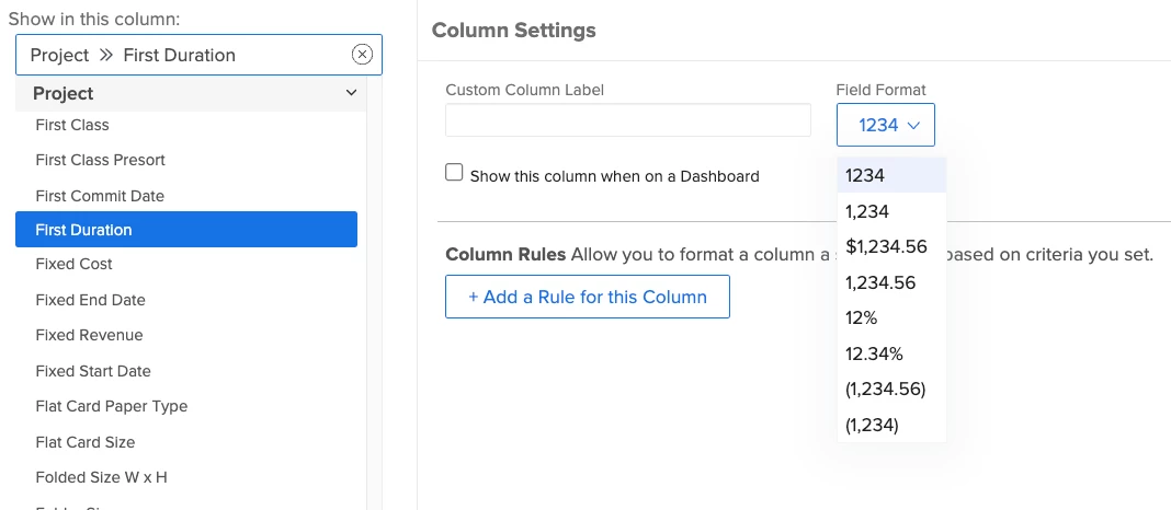 Work-to-Commit Ratio Format:Number Calculation: ROUND(DIV(Actual Duration,First Duration),1)