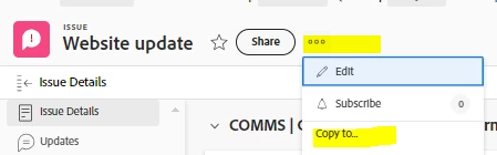 From within the Issue, I click copy to: