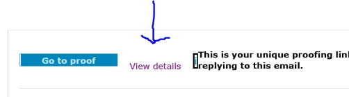 Where does the "View Details" button come from on a proof email?