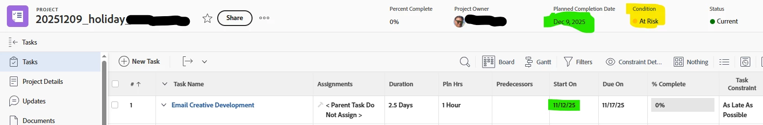 Why is my project showing "at risk", when its not scheduled to BEGIN for another month?!?!?!