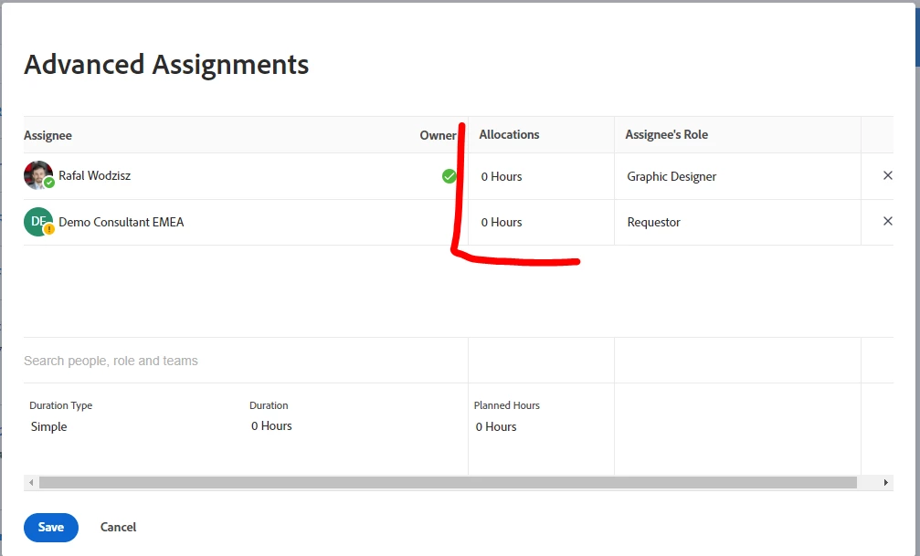 Workload balancer and planned hours for tasks with multiple users assigned