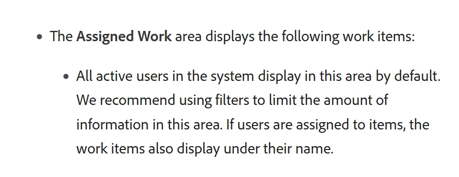 Please can anyone advise on how we can view all users (and then apply filters) on the workload balance in the 'Assigned Work' section.