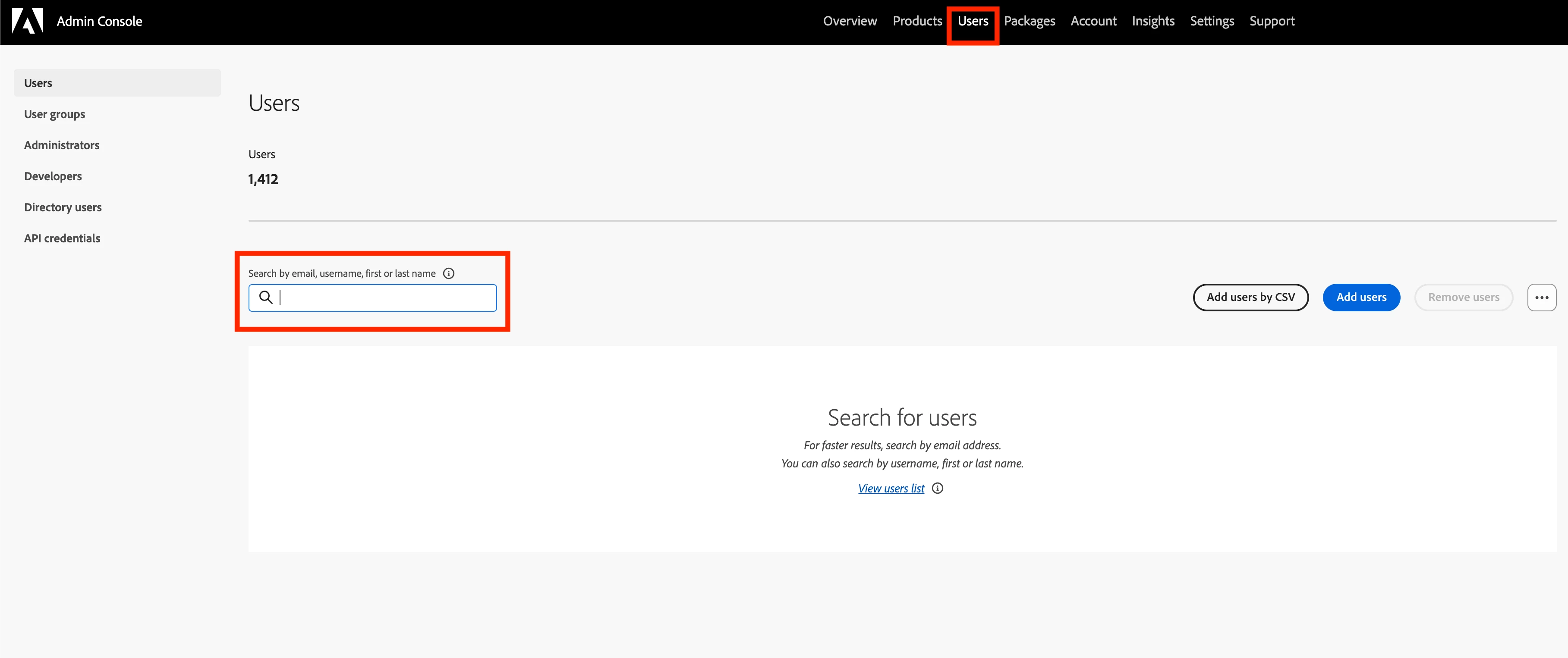 - Click on Users at the top of the page