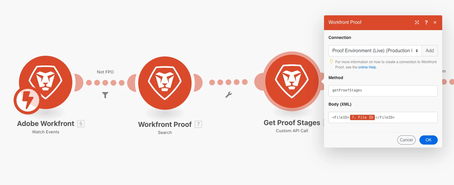 Anyone have examples of custom API calls to workfront proof?