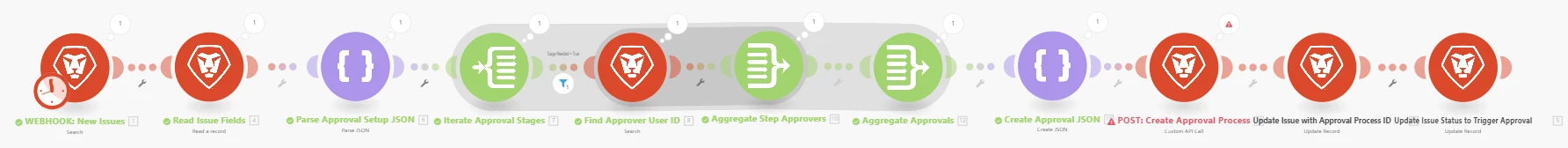 I've been trying to build an automated approval workflow in Fusion by following the "Automating Workfront Request Approval Workflows" chapter within the Adobe Workfront Fusion Cookbook but have stumbled upon an error which I can't get beyond. I'm pretty new to Fusion so I may be making a rookie error.