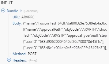 - {"name":"Fusion Test_64df7da80032fe753f9eb4a3bcacbc7c","objCode":"ARVPRC","approvalPaths":[{"name":"ApprovalPath","objCode":"ARVPTH","shouldCreate":false,"targetStatus":"INP","approvalSteps":[{"name":"Head of Tech","objCode":"ARVSTP","approvalType":null,"stepApprovers":[{"userID":"605a06fe007acd798aaebadef50895a0"},{"userID":"633d90620004540cf20c730878d45f1c"},{"userID":"633d8e1e004eb0e3e993d22fa15497e3"}],"sequenceNumber":null}],"rejectedStatus":"REJ"}],"approvalObjCode":"OPTASK"}