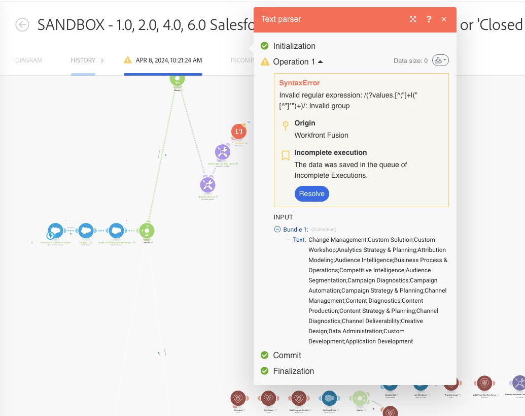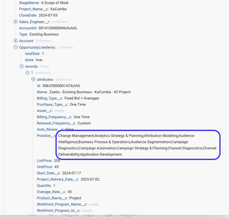 When Fusion goes to map this data to the multi select dropdown field in Workfront (Service Area), it looks at the massive clump of values coming from Salesforce as one value and tries to find the related value in my Workfront Service Area field.
