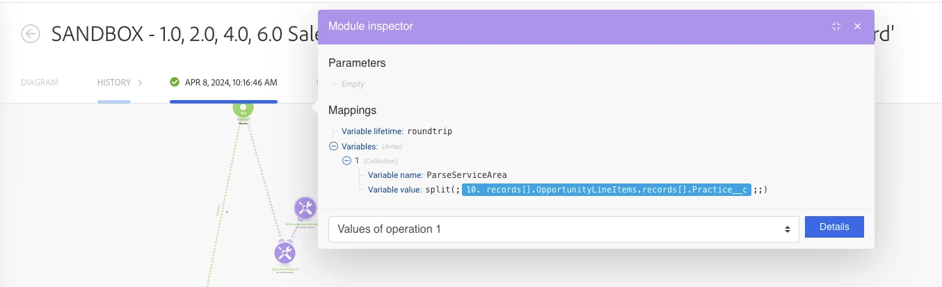 I need it to parse out all of the semicolon separate values and then go and find and select its sister value in my Workfront Service Area field.  All the same values exist in the Service Area field in both systems.