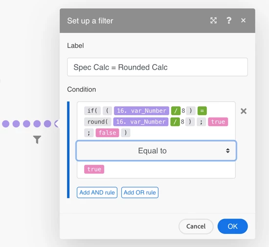 I'm working with Fusion and I'm trying to find a way to determine if a number (input bundle) is exactly divisible by specific values using math functions available. Specifically, I want to check if decimal values (representing hours) are divisible by numbers like 8.1, 8 or 7.5 (see table below)