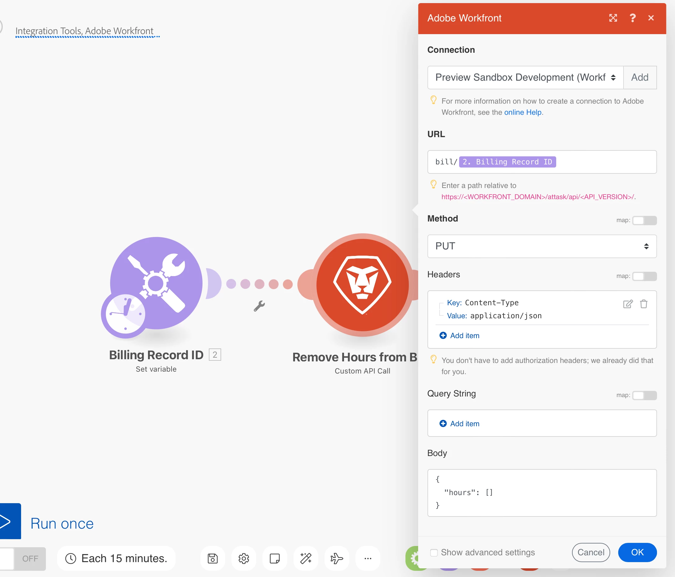 I'd like to bulk remove/delete hours entries from a number of open billing records. It looks like I would need to use the DELETE method via an API module in Fusion. Is anyone willing to guide me through this?