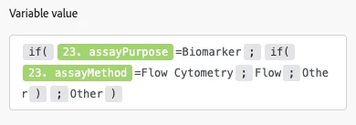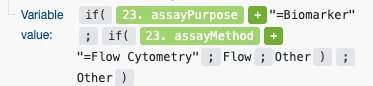 The intent is that the variable value should be set to "Flow" only if both conditions (assayMethod=Biomarker and assayPurpose=Flow Cytometry) are met, and yet when running the module, I always get a variable value of Flow, regardless of inputs: