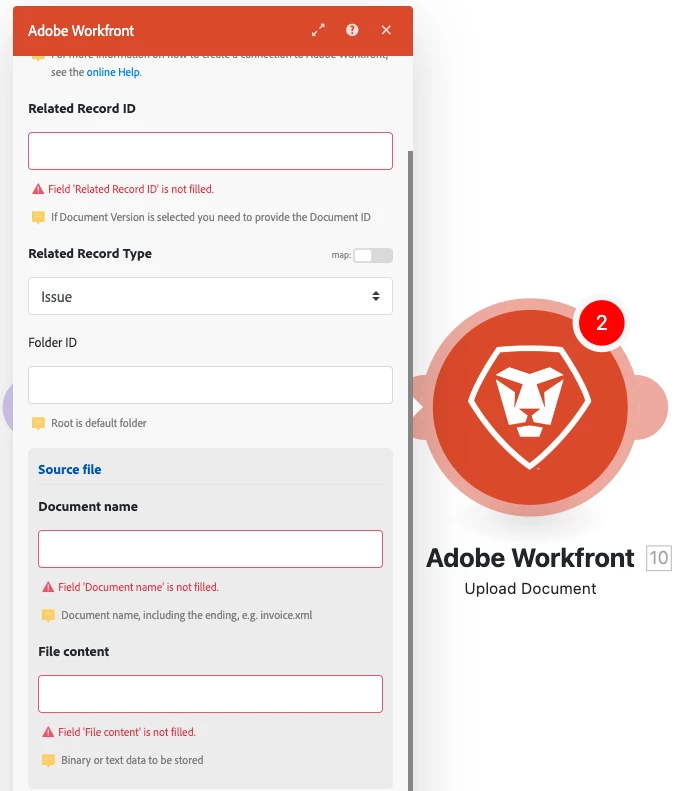 - Send that image to another application via a supported module - let's use Adobe Workfront Upload Document as the test case. - Doable