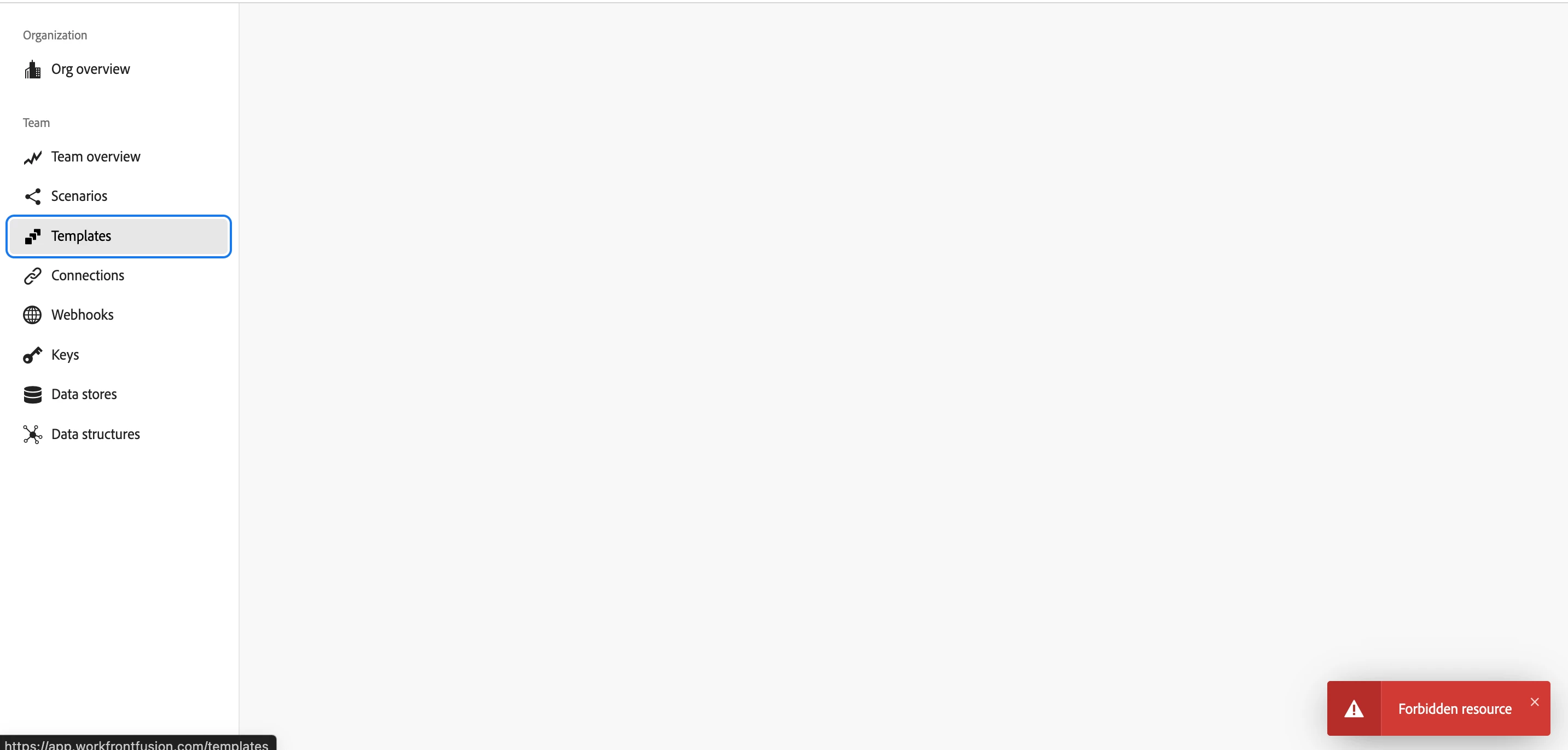 Is anyone else having an issue with "Forbidden Access" when trying to look at templates within Fusion.