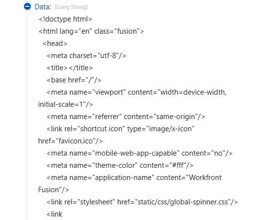 I've tried using an HTTP Make a Request module, using https://app.workfrontfusion.com/api/v5/ as a base URL (using v2 like I see in the Make.com documentation seems to result in a "not logged in" error). I've tried different calls (a list of users and a list of team scenarios). I don't get errors, but I only get a long string of HTML code (that doesn't appear to contain any of the data I'm seeking) as an output.