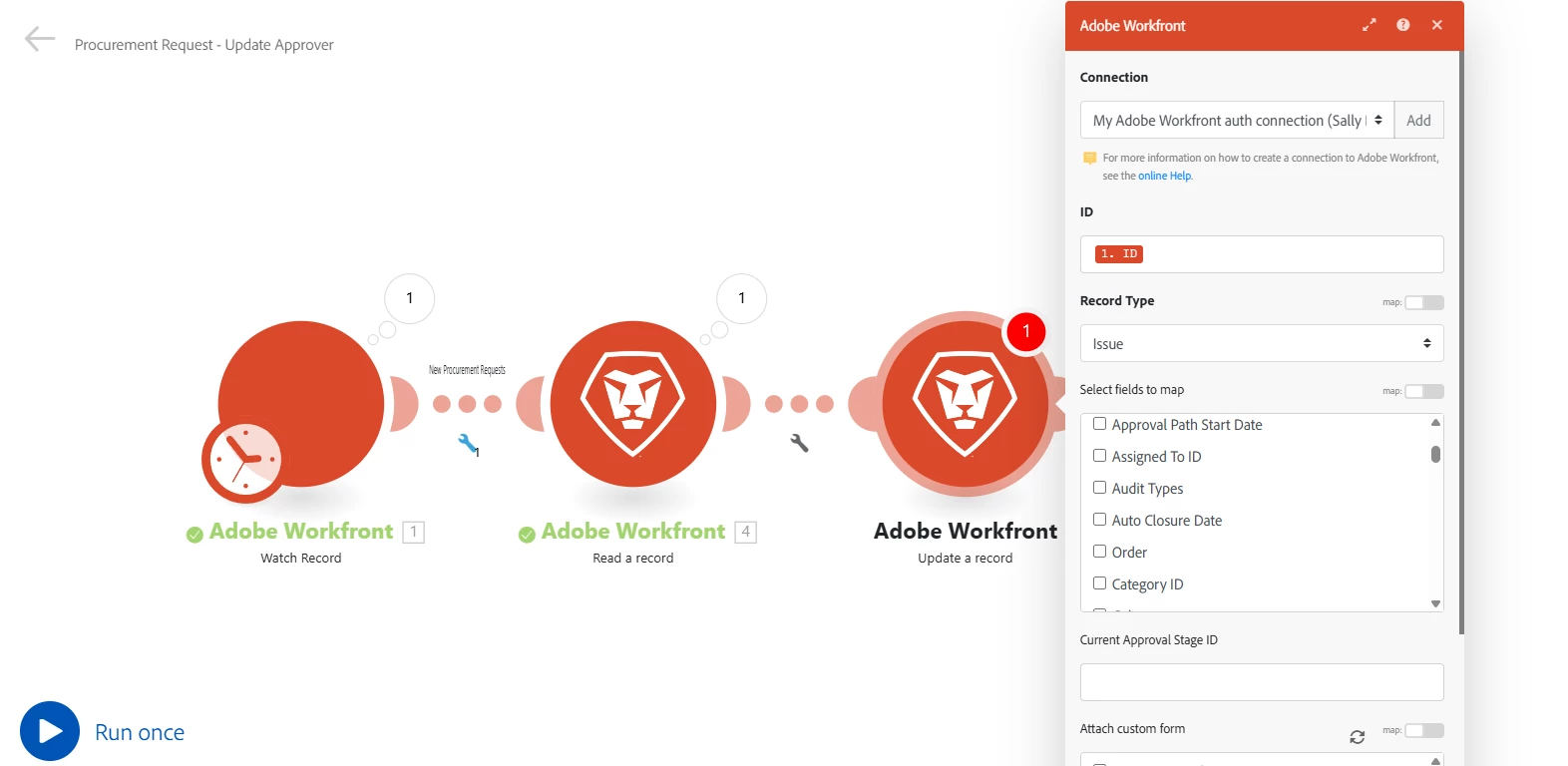 3. WF - Update a record - I am not sure where to update the approvers. Issue has a few approval related fields, but I have not found the right one.