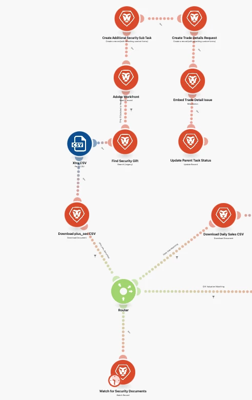 There are 2 other paths depending on the name of the document uploaded that don't seem to have the same issue. Perhaps because of the status begin changed at the end of the process? These 2 documents are placed in a corresponding folder at the Project Level. I thought because I was putting the problem csv at the task level that maybe why it was repeating because of the background making it viewable at the Project Level. That wasn't it - when I moved the doc to a folder at the project level like the others same result.