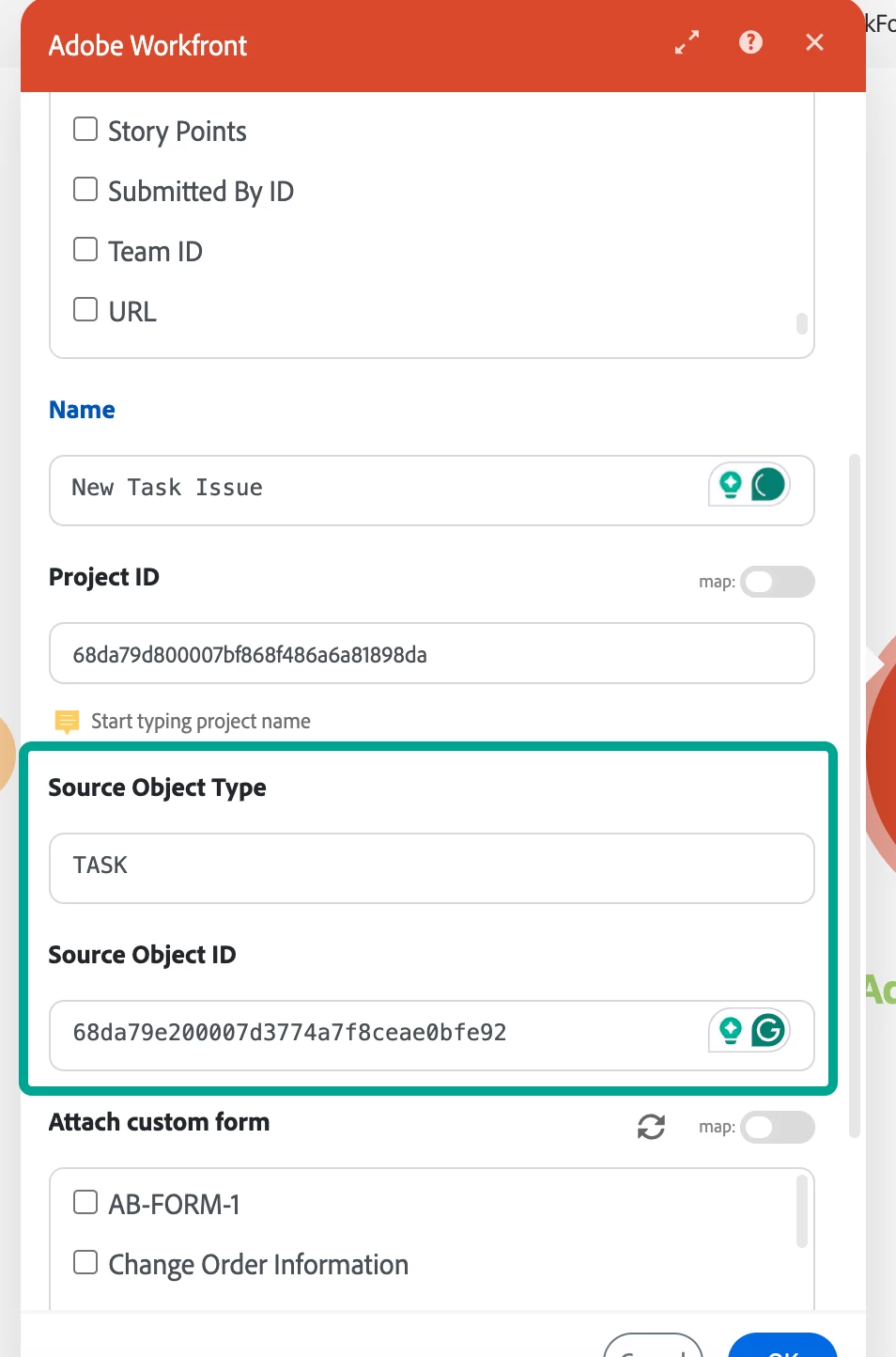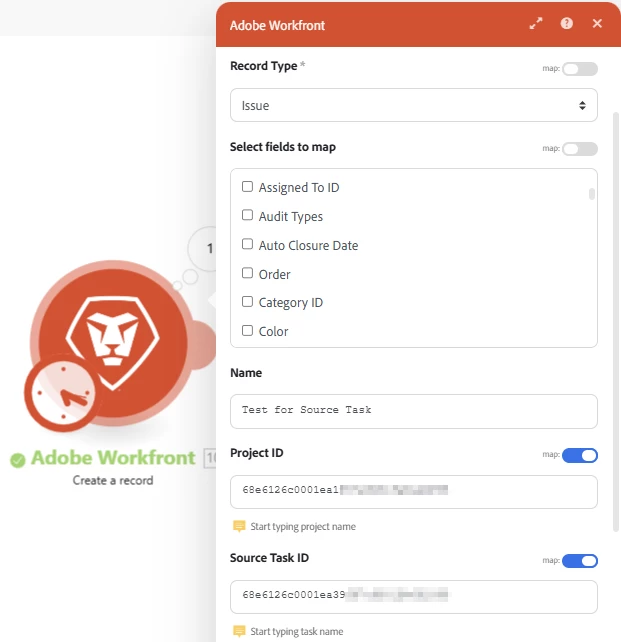 I’m trying to create an issue under a specific task (see image below). However, the issue always gets created directly under the project instead of the task, resulting in a structure like: