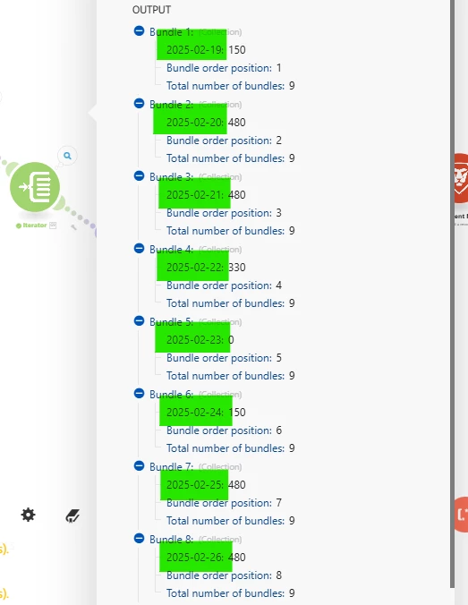 How to get below highlighted date from the iterator bundle output?