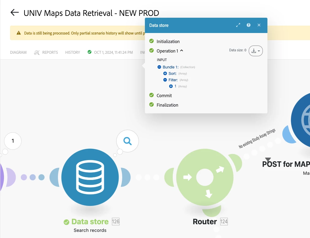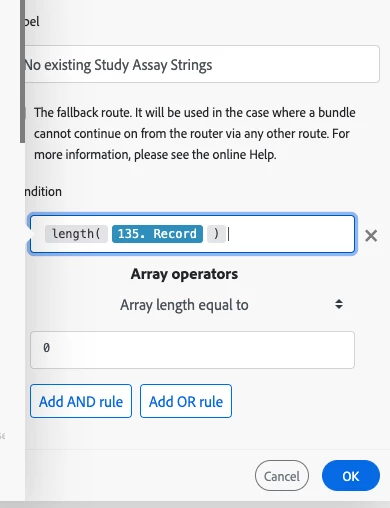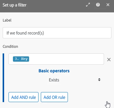 I would like to search a data store, and if the search turns up no results, I want to proceed down a specific route downstream of that module (specifically, "there's no record for this already? then let's create one!")