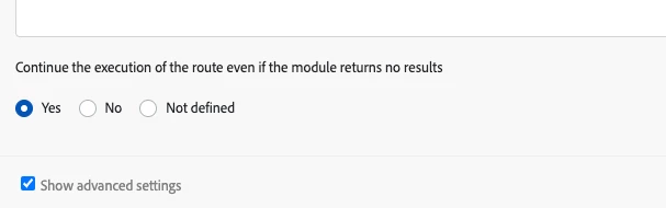 However, whenever there is no Output for a search module, the scenario ends and I can't continue.