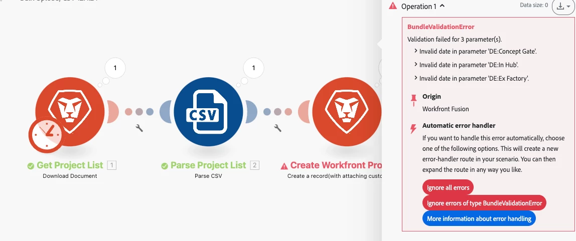Hi all, My scenario is an bulk upload from CSV to create new project and I'm getting error messages for invalid date for my custom form mapped fields. I've ran this scenario in the past few weeks and didn't run into any errors and today it's not working. Has anyone experienced this error?