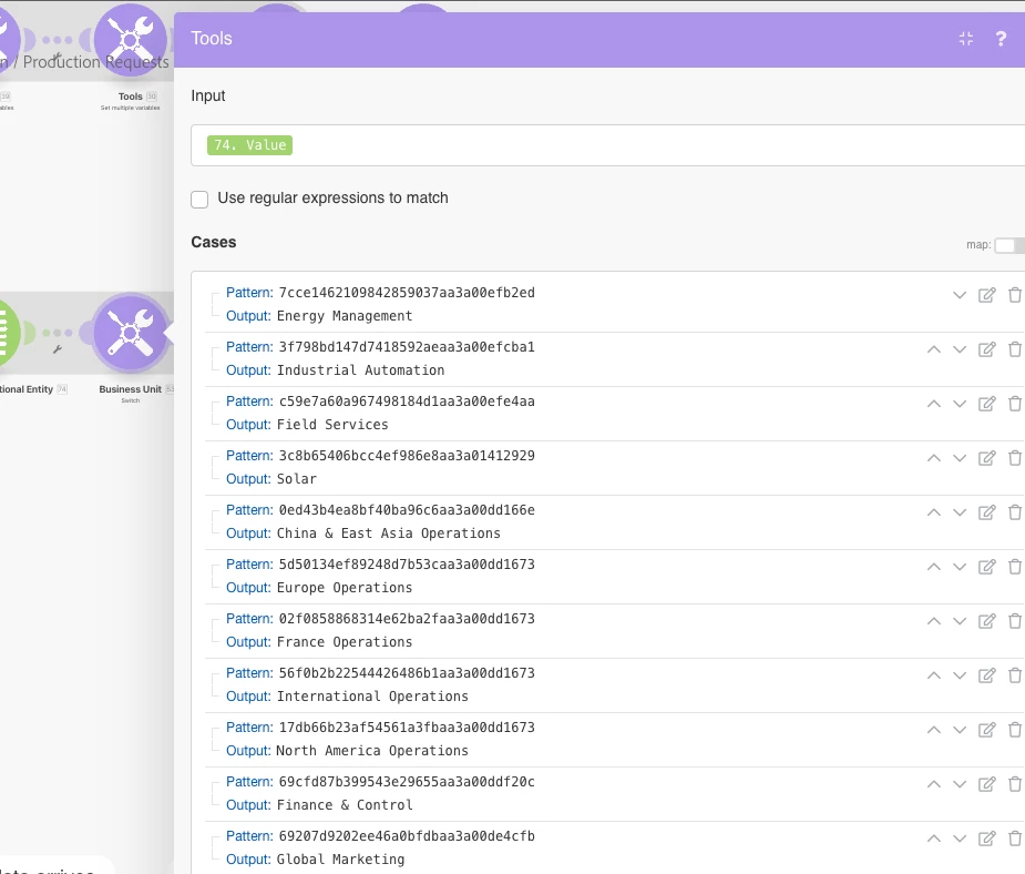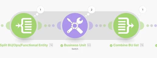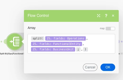 I'm mapping 3 separate pick list fields from our DAM tool into a single field pick list in Workfront. I've been able to split the values (which come from the webhook as a unique ID and are mapped to their Workfront value) switch the values for the Workfront values and then combine them successfully. The output is 2 separate values coming.