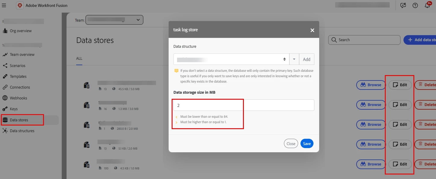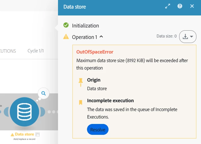 We recently encountering error in fusion scenario, where it showing "Maximum data store size (8192 KiB) will be exceeded after this operation"