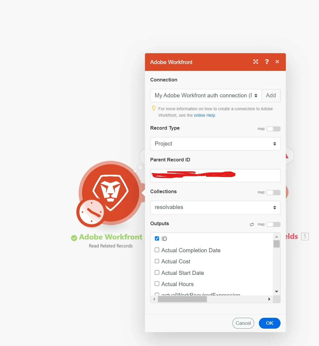 Hello, I would like to pull in all requests from a specific campaign. I have used the read related records module, and inputted my parent ID, what do I need to choose in collections to pull in all requests?