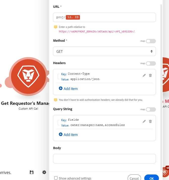 I have a PUT Custom API module that shares a project with a user's manager once an issue is converted in the scenario.