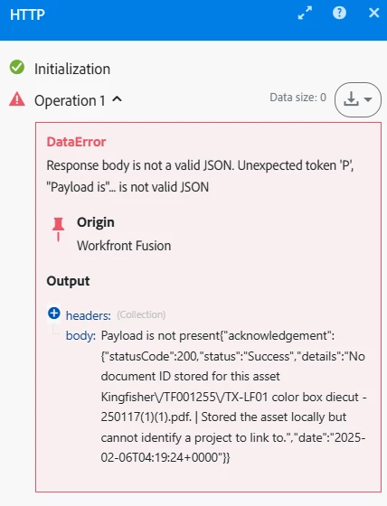 Response body is not a valid JSON. Unexpected token 'P', "Payload is"... is not valid JSON