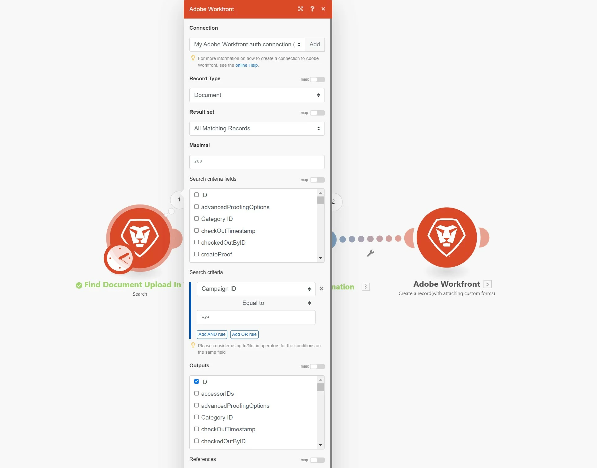 How can I use Fusion to create issues every time a new document is uploaded in a specific campaign?