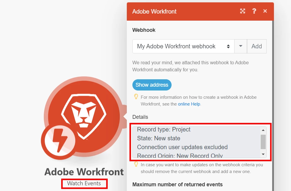 I'm trying to trigger Watch Events module when a new project is created in the system. I have not set any event filters yet, still it does not run when a new project is created. The scenario is scheduled to run immediately as the data arrives.