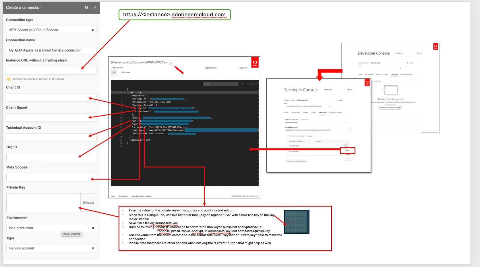 Running into issues in connecting Workfront Fusion with AEM Assets module. The mapping between the tech account created with the values asked when creating connection in Workfront is not provided in any appropriate article. This article is helpful but does not map the attributes as required (https://experienceleague.adobe.com/en/docs/experience-manager-cloud-service/content/implementing/developing/generating-access-tokens-for-server-side-apis#the-server-to-server-flow).
