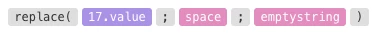 I am trying to remove spaces from values and concat them into a new field with Fusion such that we can easily provide information. This has to be done with Fusion because some of the information is on a higher task or even project level and are custom fields, so doing this with a calculated field is not an option. For now I have 5 fields that I want to concat into one field such that: